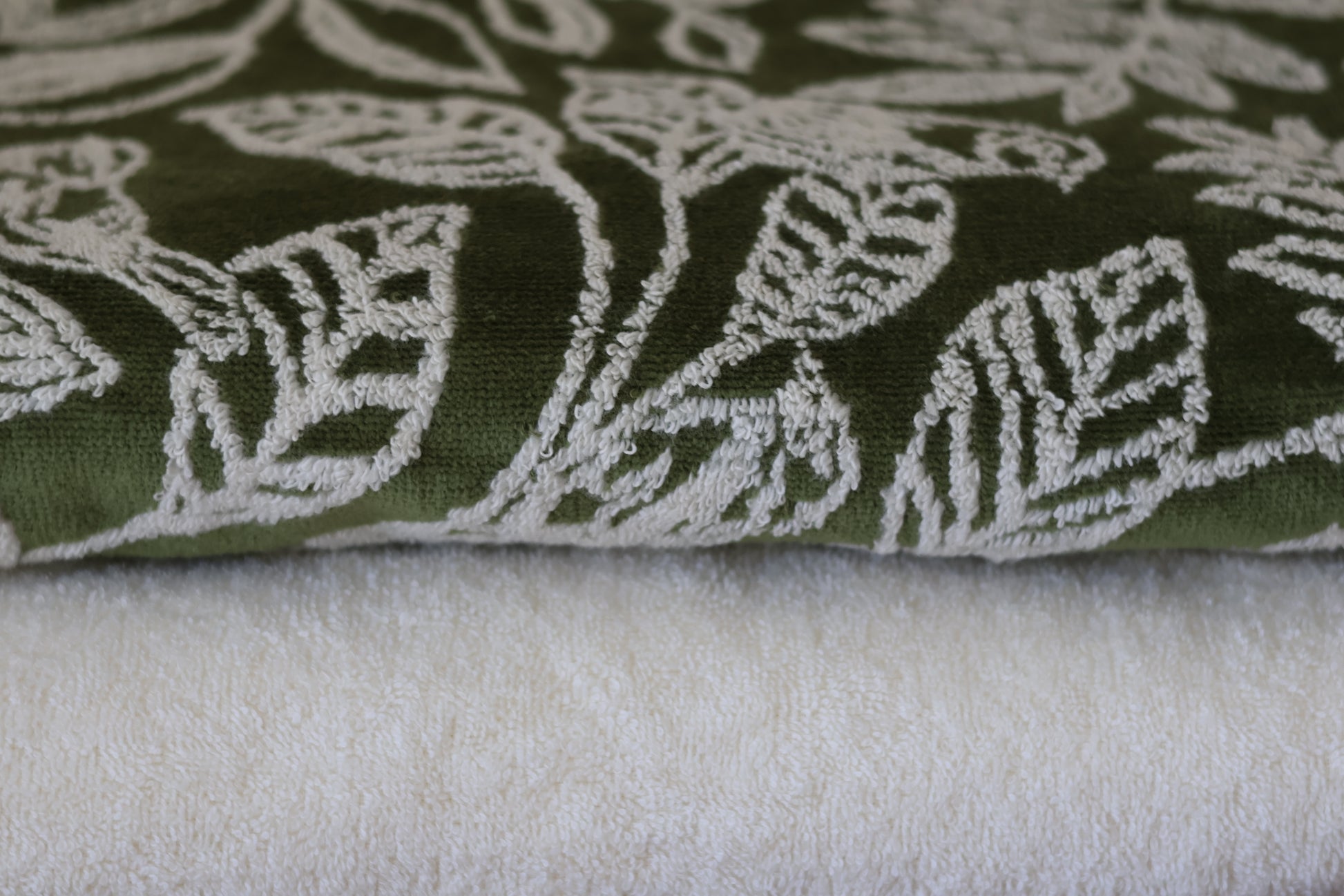 I have this tropical green and white towel combo in my studio, ready to be transformed into a one of a kind towel dress. The dress is made from four panels and features an open back.