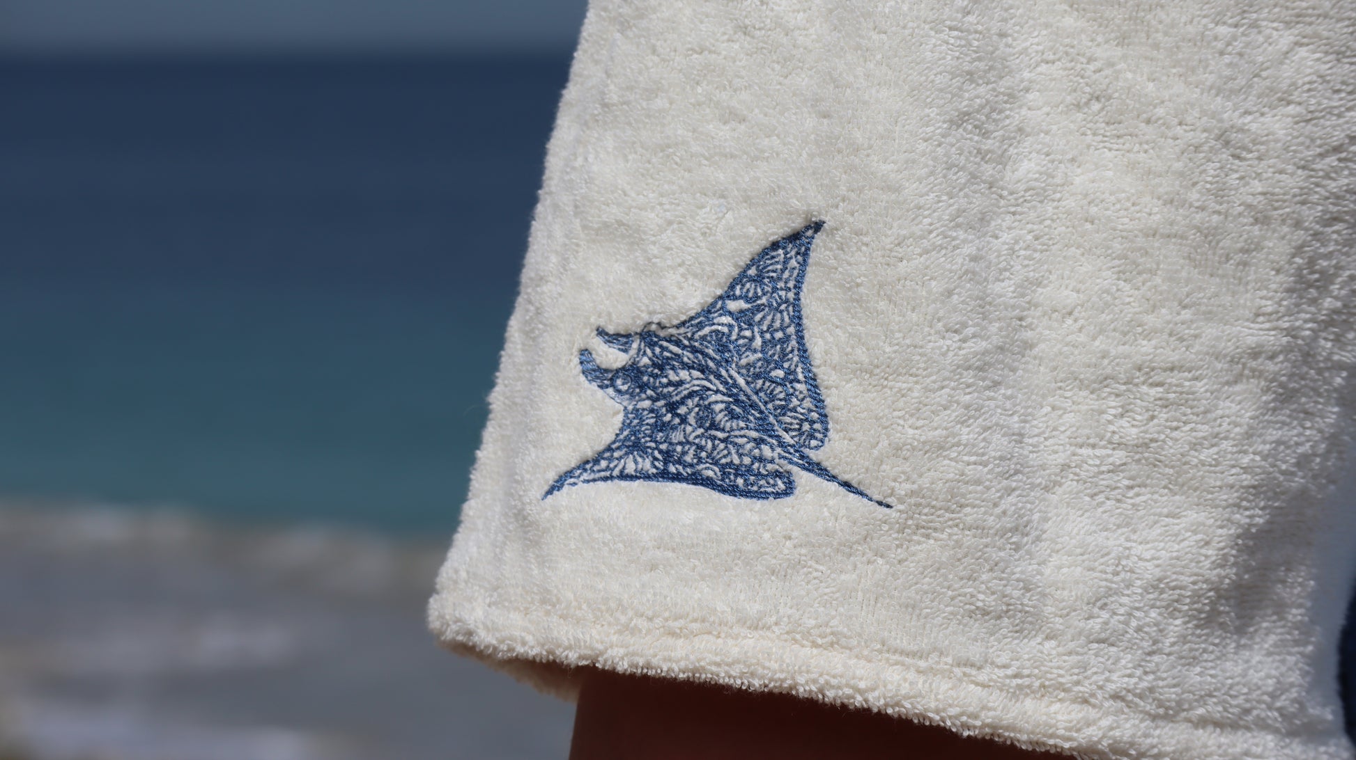 The non-roll waistband sits just above your hips for a snug, comfy fit you won’t want to take off. Finished with an embroidered Manta Ray accent on the front, these shorts are perfect for beach days, lounging or everyday wear.