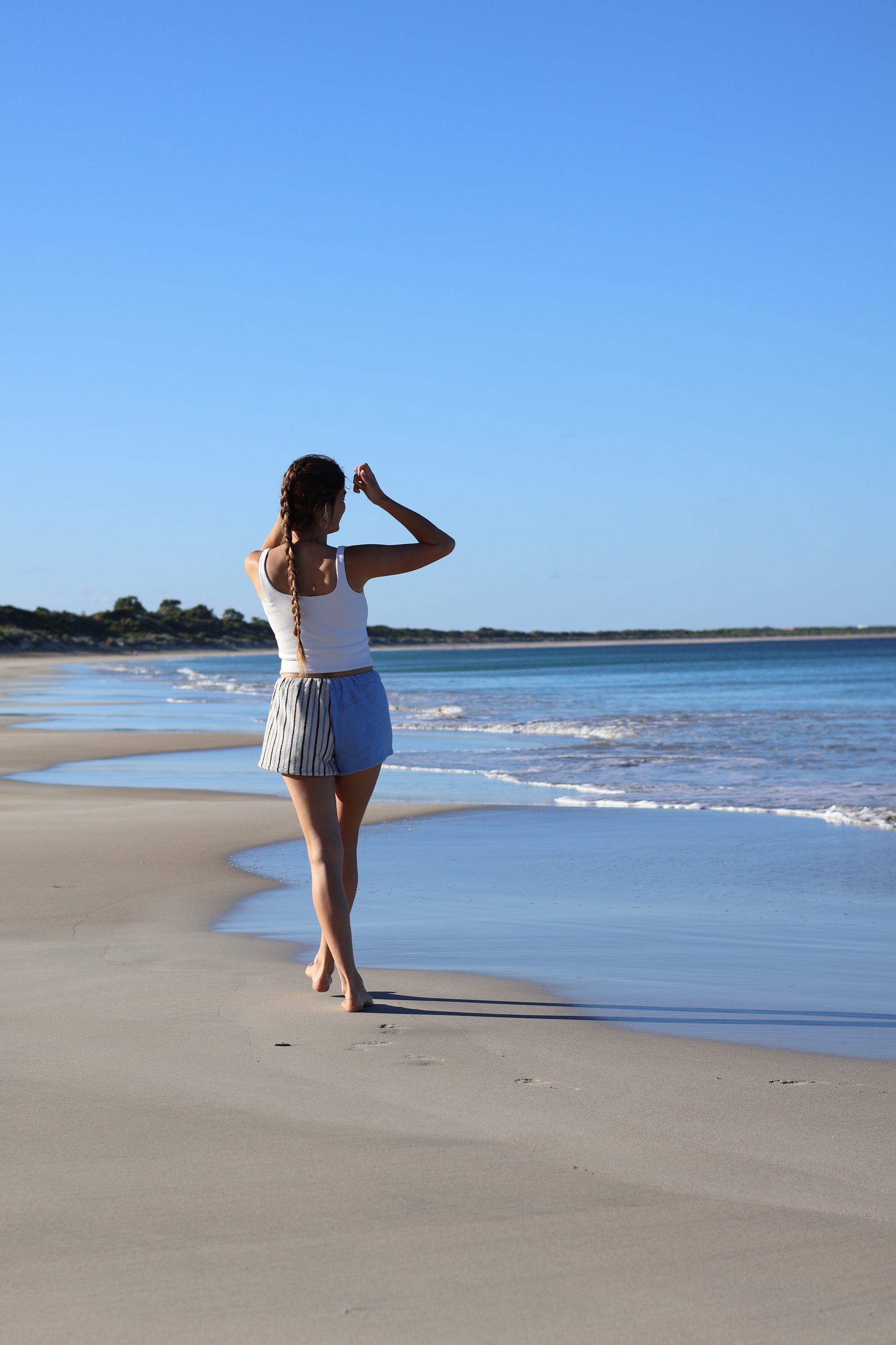 Inspired by the Australian coast, I created these mid-rise towel shorts to be the perfect mix of comfy and stylish. I handmake every single pair myself in my little studio here in Western Australia, using thick 400 GSM, 100% cotton towelling.