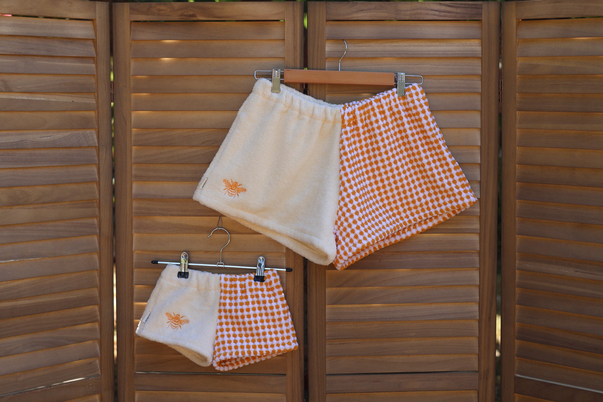 One-of-a-kind piece towel short. This short matches the adult Summer Bee design.